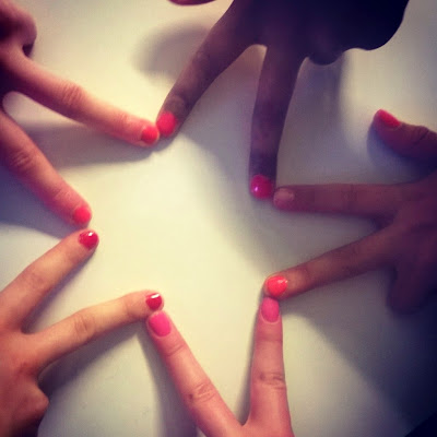 5A:n tytöt juttelivat ystävyydestä ja siitä, mitä meille merkitsee kuunteleva ja haleja antava ystävä. Tytöt opettelevat olemaan myös isolla porukalla. Tätä harjoiteltiin lakkailemalla yhdessä kynsiä. :)